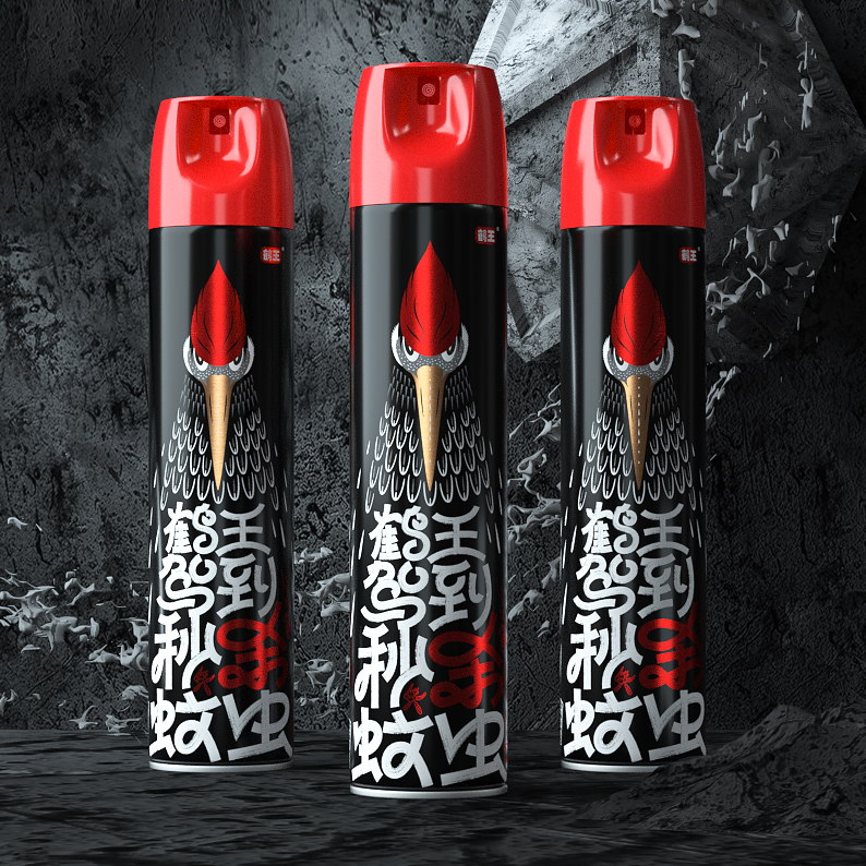 包裝創(chuàng)意設(shè)計,字體設(shè)計涂鴉風(fēng)格,黑白紅色彩對比視覺酷炫,顏值爆表,在殺蟲氣霧劑包裝中脫穎而出。