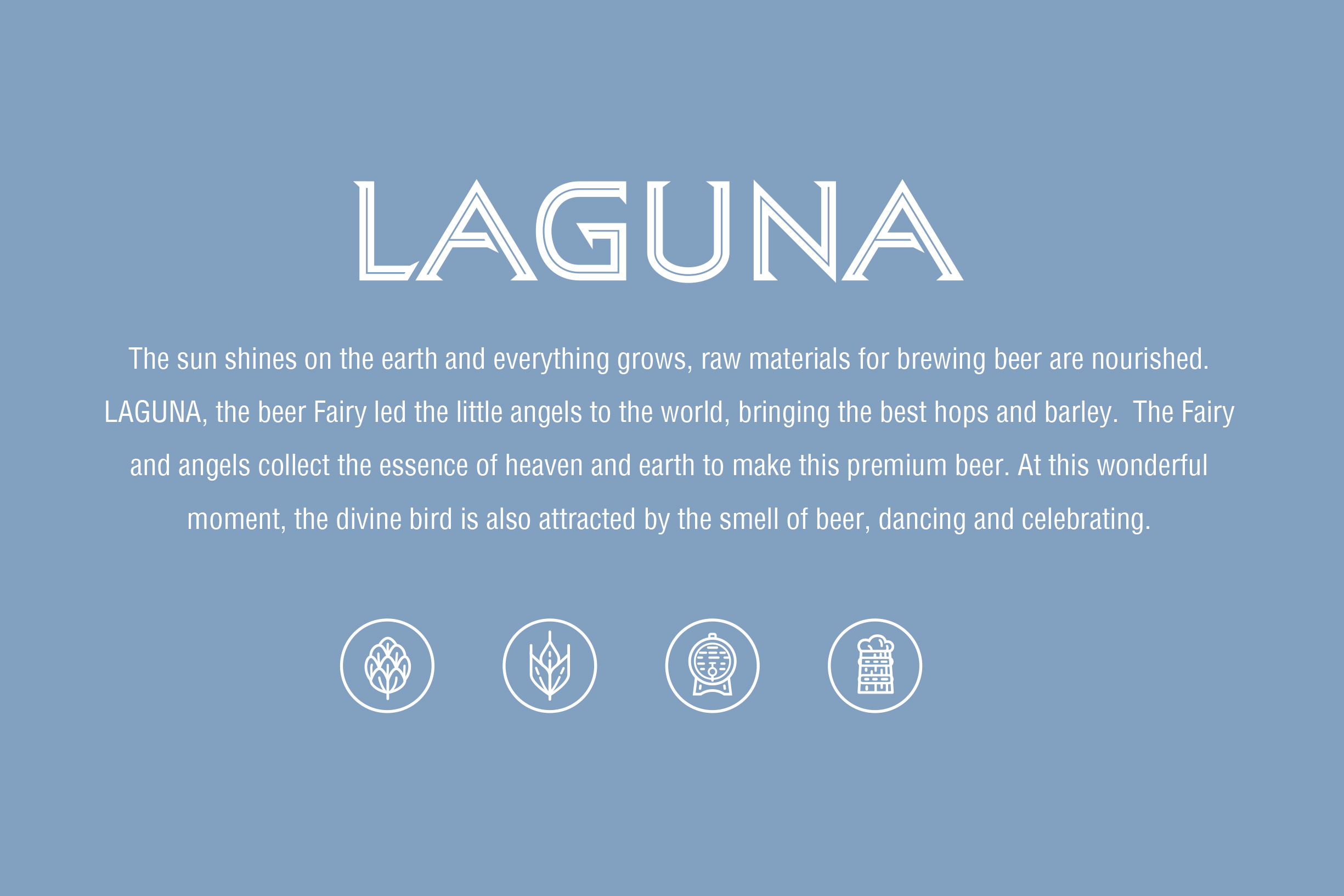 The sun shines on the earth and everything grows, raw materials for brewing beer are nourished. LAGUNA, the beer Fairy led the little angels to the world, bringing the best hops and barley. The Fairy and angels collect the essence of heaven and earth to make this premium beer. At this wonderful moment, the divine bird is also attracted by the smell of beer, dancing and celebrating. Sunshine, angels, goddesses and holy birds are all positive and energetic things. People are naturally attracted by these beautiful things.