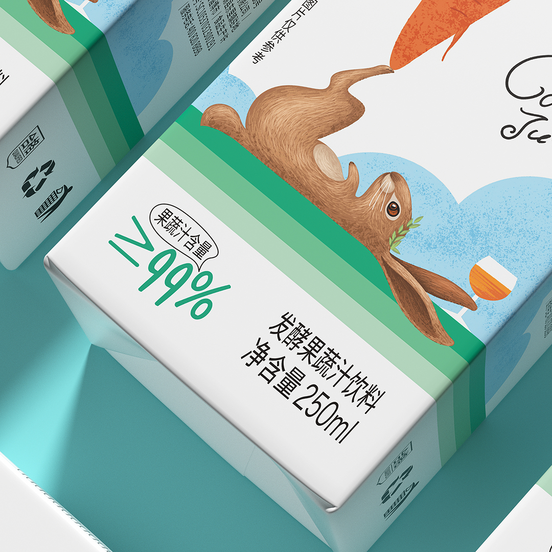 包裝設(shè)計創(chuàng)意直觀體現(xiàn)了產(chǎn)品品類屬性及胡蘿卜汁的賣點,同時形成自身個性化形象符號識別,通過設(shè)計表現(xiàn)強化與同類產(chǎn)品差異化訴求。